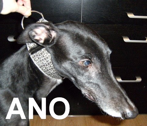tak nějak se snažíme vždy upozornit na vše možné a obrázky mnohdy pomohou více než slova. Samozřejmě u předávání pejsků - také ukazujeme, jak obojek nasadit. je velice nutné aby sjte obojek nasadili přímo za uši a utáhli ( neříkám uškrtit, ale pevněji utáhnout ), aby při rchlé změně směru chrta-což oni umí velice dobře a nečekaně, nevyvlékl. Na obojek patří známka s Vaším kontaktem.